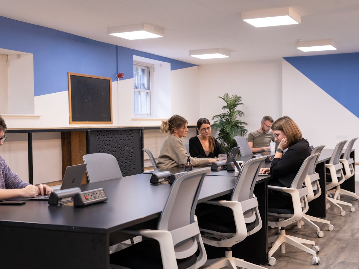 For the days that you want to bring your people together to work alongside each other, there are day offices. Renting an office for a day lets hybrid and remote teams get all-important in-person time to collaborate, communicate and build culture. Day offices offer a private office space for face-to-face team working, with desks, chairs, and often the option to use monitors.