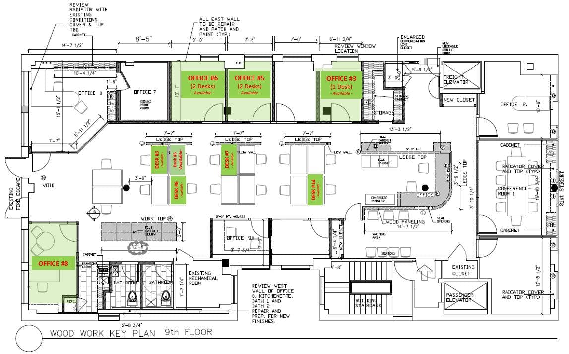 IncludedShared Office Space Available. Beautifully renovated loft in the Flatiron District. Private offices with desks, corner office suites with desks, individual desks, 2 private restrooms, conference room, full kitchen, WiFi and central A/C.