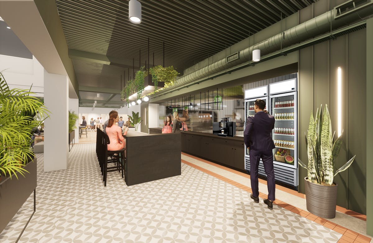 This building also has offices, meeting rooms and coworking desks to book on-demand.